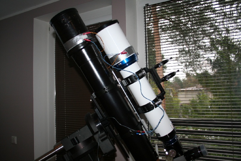 Päris teaduslike vaatluste tarbeks oli vaja teha oma pisirefraktorile kuumutaja. Kuna observatooriumis juhtus olema üks rull nõukaaegset isoleeritud takistustraati ja leidsin kuumutaja aluseks käe ümber kinnituva Tartu Observatooriumi helkuri, siis võtsin nõuks kaste eemaldaja valmis meisterdada.