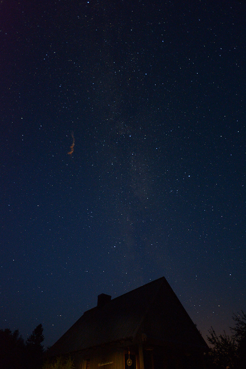 Täna öösel sai vaadeldud perseiidide sadu ning otsustasin pildistada statiivilt edela suunas linnuteed. Ühe 30-sekundilise pildi peale jäi uhke sähvatus ning järgnevatele piltidele meteoorist alles jäänud tossupahvak. Pildid on tehtud Pärispea poolsaarelt
