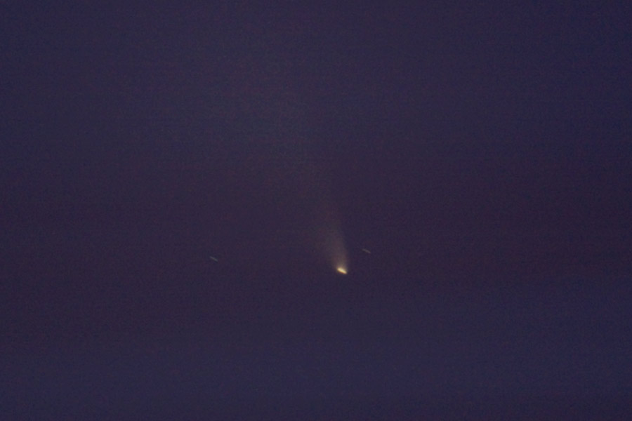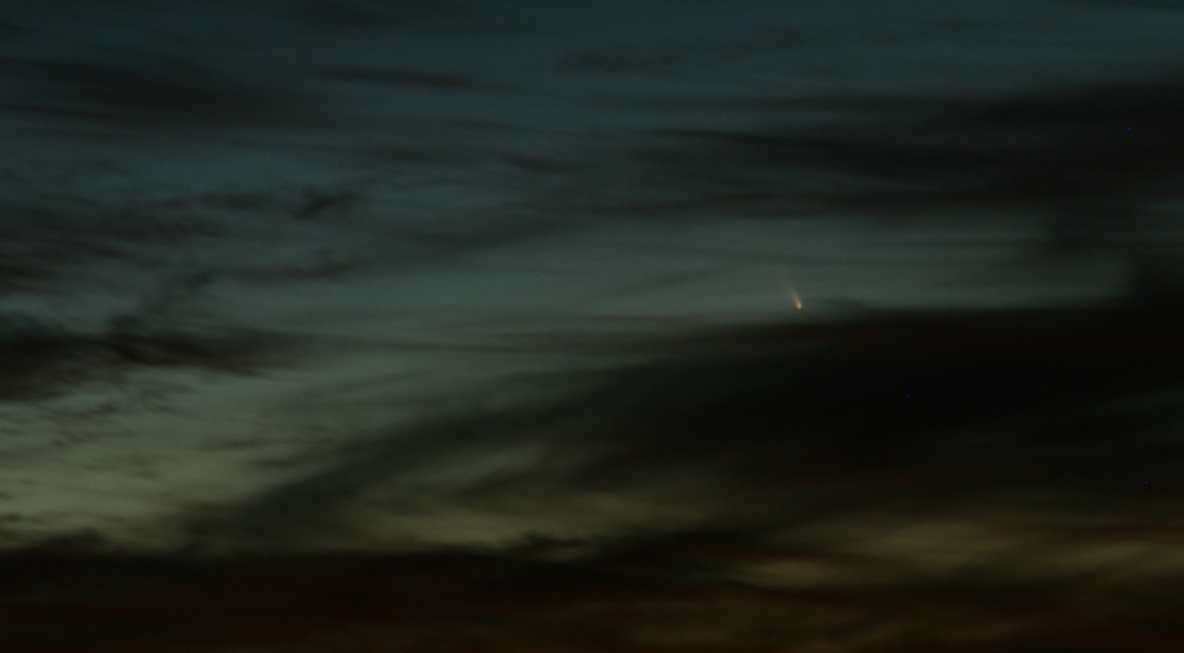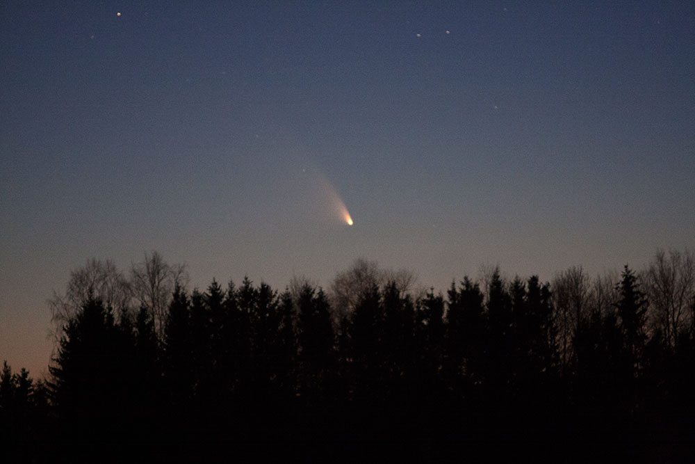 Mitu õhtut komeedijahti viis tulemusele 13. märtsi õhtul, mil madal läänetaevas oli Tallinnas piisavalt läbipaistev, et sai kosmilise külalise pildile.