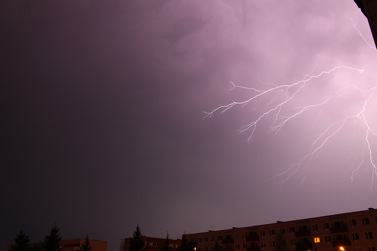 pilt on kahjuks photoshopitud, kuna hakkasin välgu hetkel sätteid muutma ja kaamera nihkus tsipa (näha kõige keskel oleva posti järgi.) õnneks välk oli säri lõpus, jäi ta terav