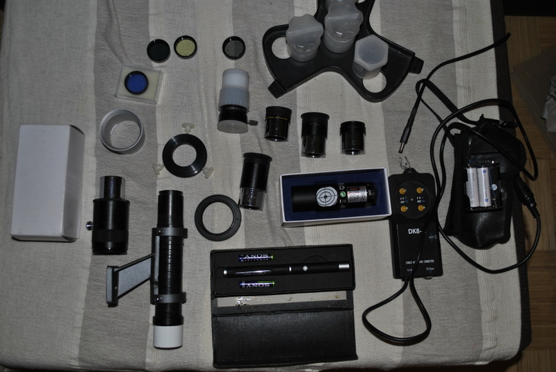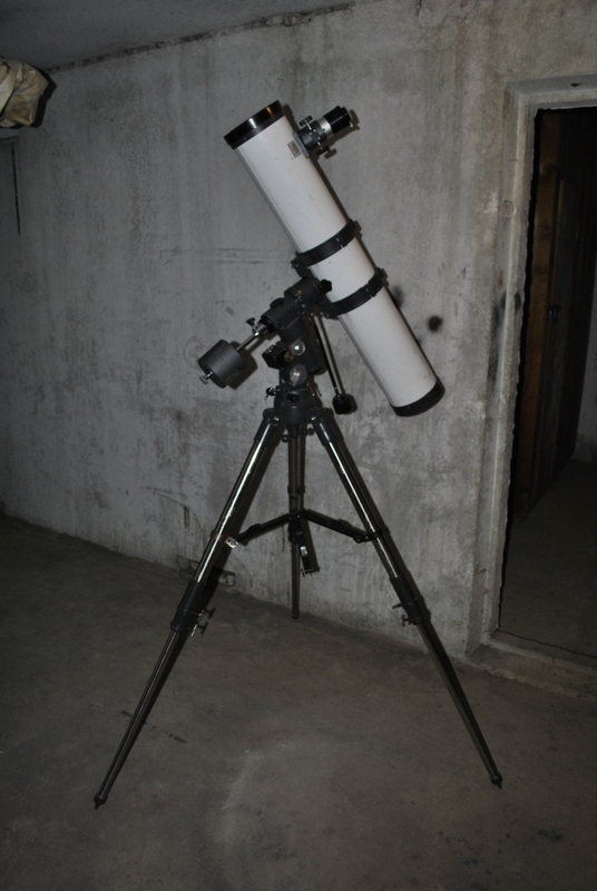 Müüa siis ekvatoriaalse monteeringuga teleskoop. Ühe mootoriga. Mootori toide tehtud ümber akupatareidega töötavaks. Otsija on katki, kuid saab kasutada. Kolmjala plastik kinnitused toruküljest on katki külmaga läinud. Üks taastatud metallist. Teleskoop on kollimeeritud kuna kmpl. kaasas ka kollimaator. Lisaks saab kaasa päikese vaatamiseks valmistatud otsakatte kilega (lisaks tagavarakile ümbrikus), 6,4mm Meade okulaar ja veel 25mm, 15mm, 10mm, , T-rõngas nikoni jaoks, t-adapter peegelkaamera jaoks, soovi korral ka adapter Canon powershot A540-le, kahe heledusega kuufiltrid, 3 värvifiltrit (roheline, kollane, punane), 2x barlow lääts. Vist sai kõik.